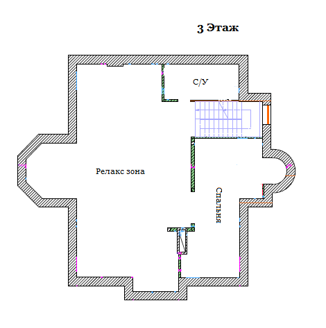 3 этаж: Мансарда- лаундж зона, спальня, с/у.