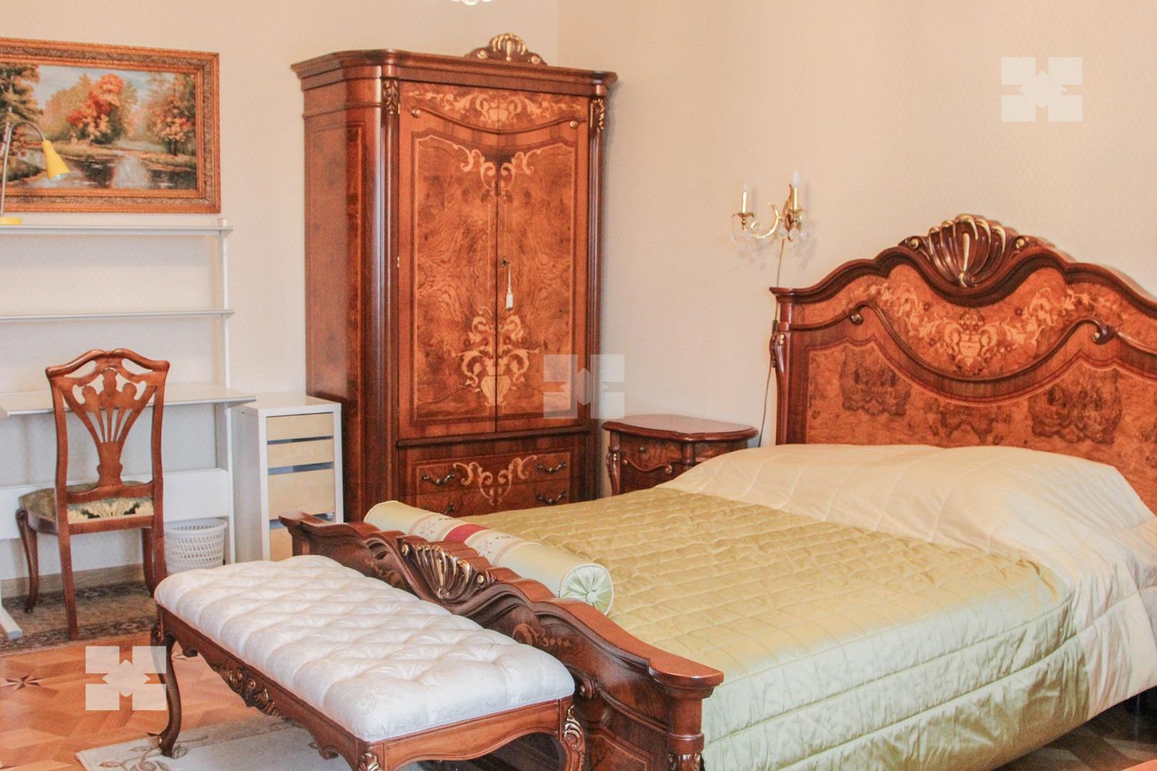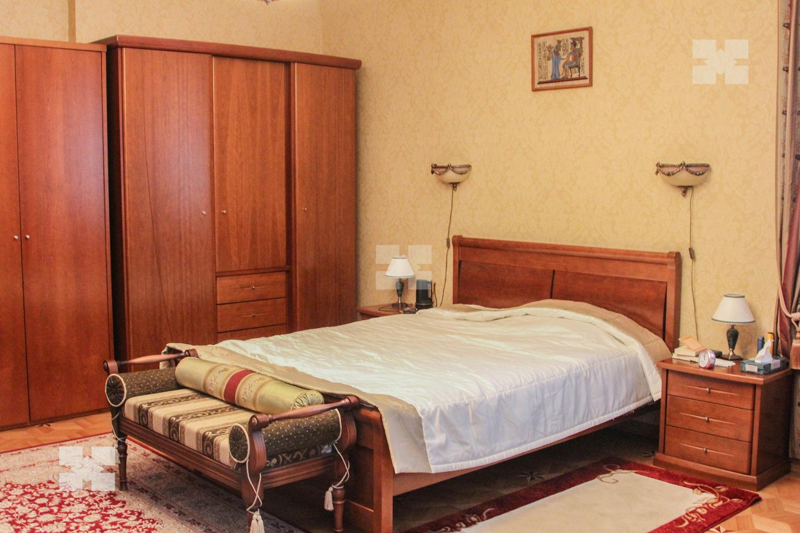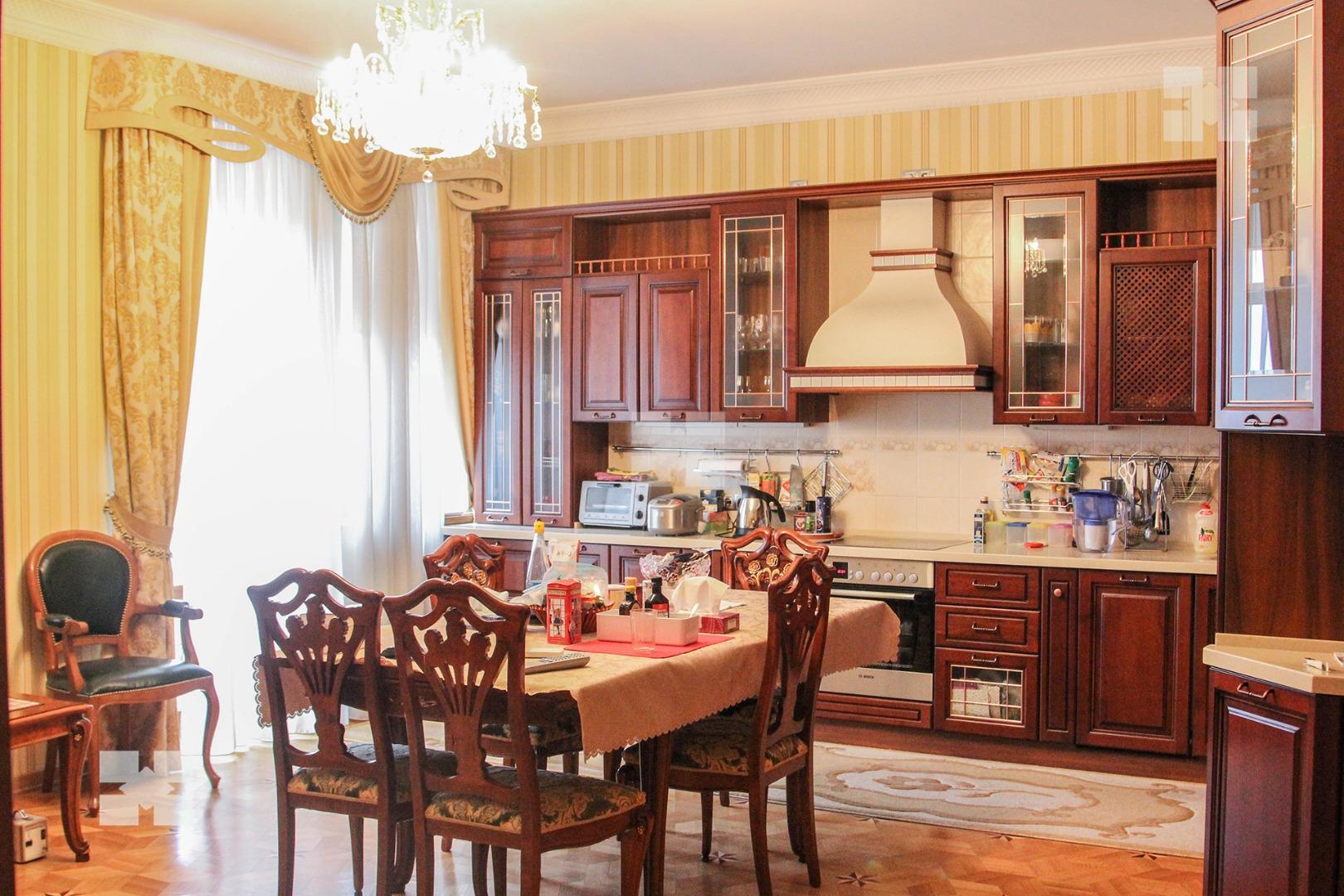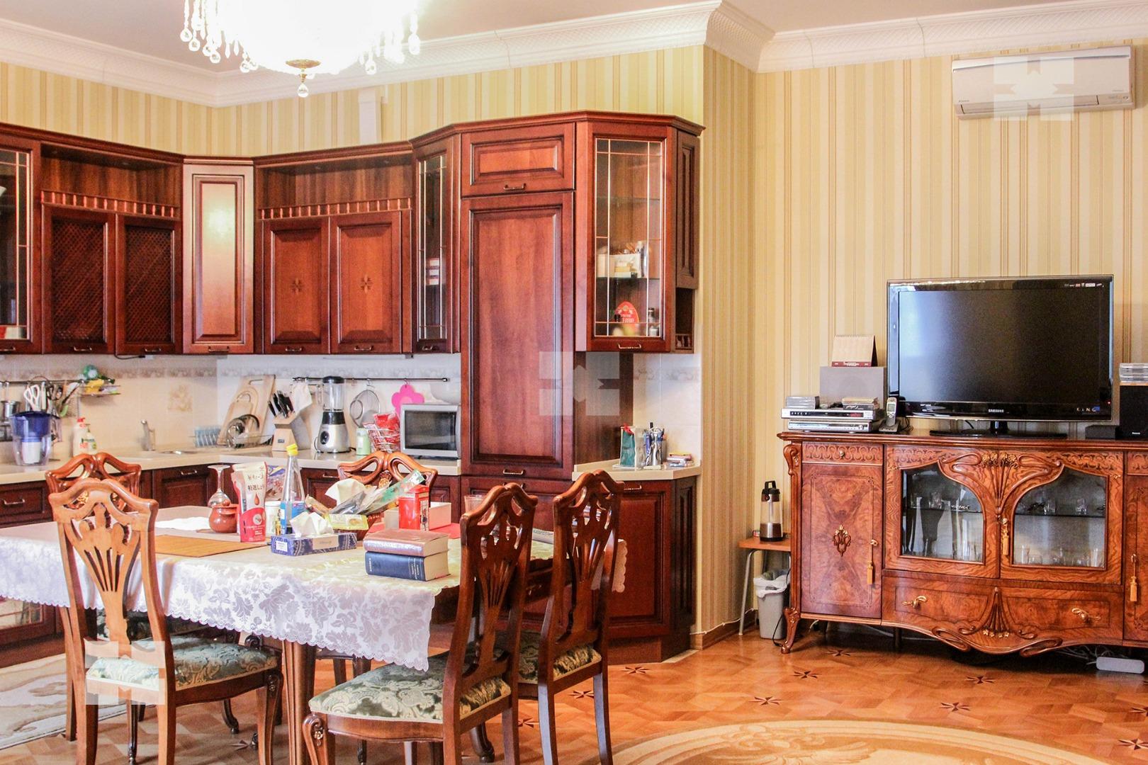 Во всех комнатах имеются телевизоры, кондиционеры. Установлен городской телефон, интернет, бытовая техника (стиральная и посудомоечная машины, холодильники, домофон, система видеонаблюдения и т.д.). Пол наборный паркет.